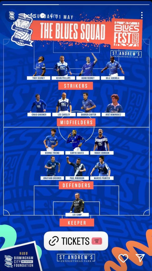 The squad for these teams has been revealed with plenty of Blues Legends putting on the Bleus shirt once again including Dele Adebola, Darren Carter, former interim England Manager Lee Carsley, Paul Robinson and Craig Gardner but the real excitement has to be seeing the legend that is Lee Camp back between the sticks. Get ready to see absolute world class shots saved, double saved, while the average shot that looks like a comfortable save rolls into the back of the net.